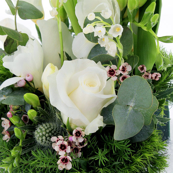 Votre arrangement floral Florajet, composé de fleurs fraîches, pourra être quelque peu différent du visuel présenté qui a valeur indicative. Votre composition, créée spécialement pour vous par un de nos artisans, est susceptible de varier légèrement en fonction de la sensibilité artistique du fleuriste mais aussi de la saisonnalité des fleurs qui la composent. L'esprit du bouquet, sa forme, ses couleurs ainsi que ses essences principales seront respectés par notre artisan fleuriste qui réalisera, à votre intention, cette création inédite quelques minutes avant de la livrer.