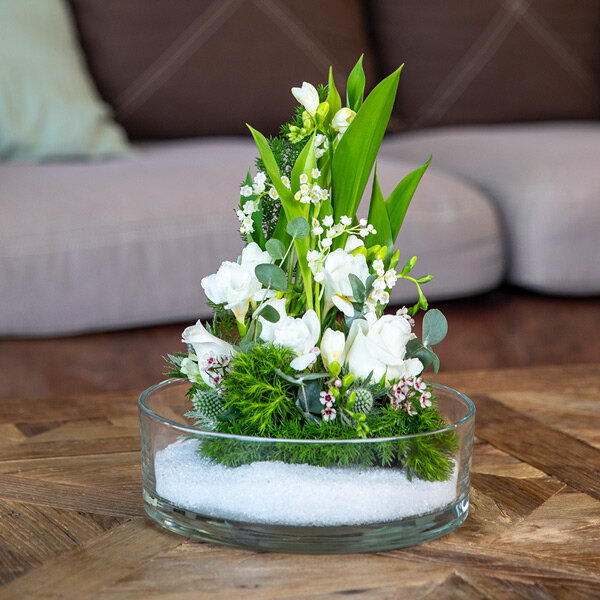 Votre composition florale sera soigneusement préparée par un artisan fleuriste proche du destinataire, garantissant un rendu unique, harmonieux et empli de fraîcheur.
