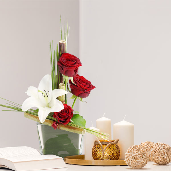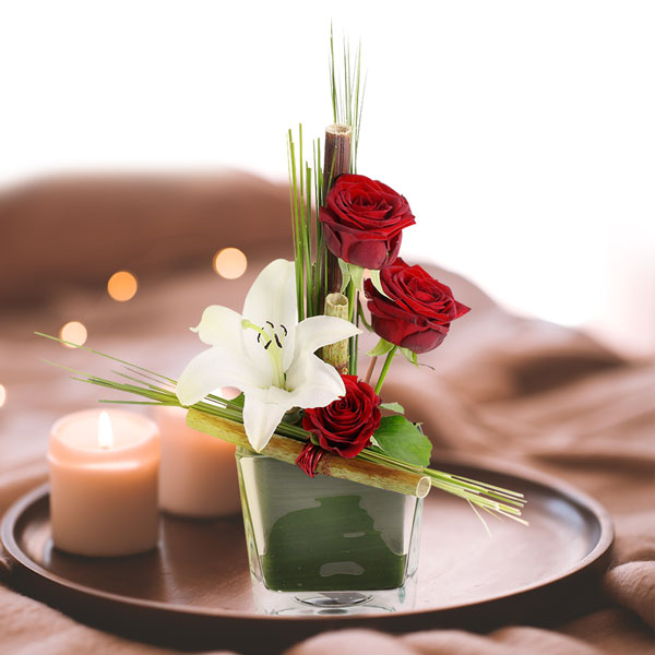 Votre arrangement floral Florajet, composé de fleurs fraîches, pourra être quelque peu différent du visuel présenté qui a valeur indicative. Votre composition, créée spécialement pour vous par un de nos artisans, est susceptible de varier légèrement en fonction de la sensibilité artistique du fleuriste mais aussi de la saisonnalité des fleurs qui la composent. L'esprit du bouquet, sa forme, ses couleurs ainsi que ses essences principales seront respectés par notre artisan fleuriste qui réalisera, à votre intention, cette création inédite quelques minutes avant de la livrer.