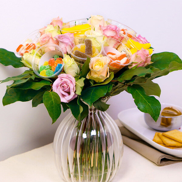 Offrez une pause gourmande et florale avec ce bouquet unique mêlant l’élégance de la rose pastel à la tendresse sucrée des bonbons, cet assemblage raffiné séduit par son originalité et sa poésie. Douceur pastel est une véritable invitation à la gourmandise, c’est le bouquet parfait pour célébrer un anniversaire, une naissance, ou tout simplement faire plaisir. Ce cadeau original ravira les amateurs de douceurs et de belles attentions. Un bouquet plein de charme et de fantaisie, à déguster des yeux et du bout des doigts.