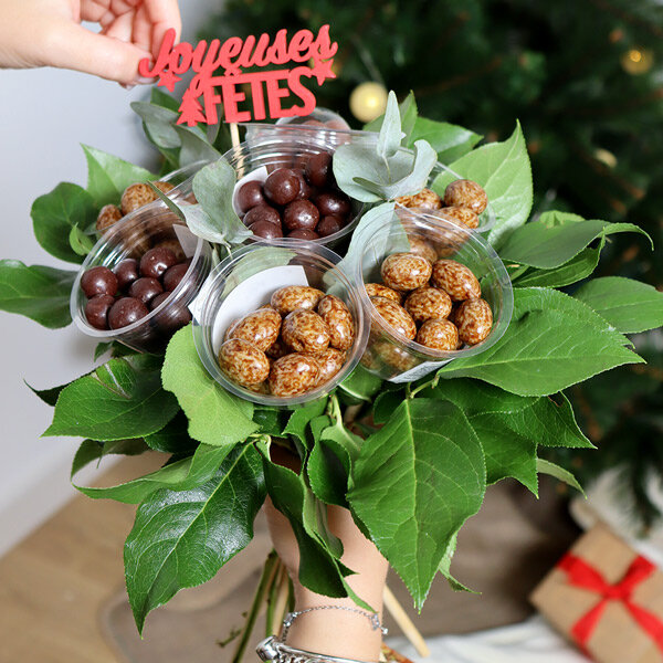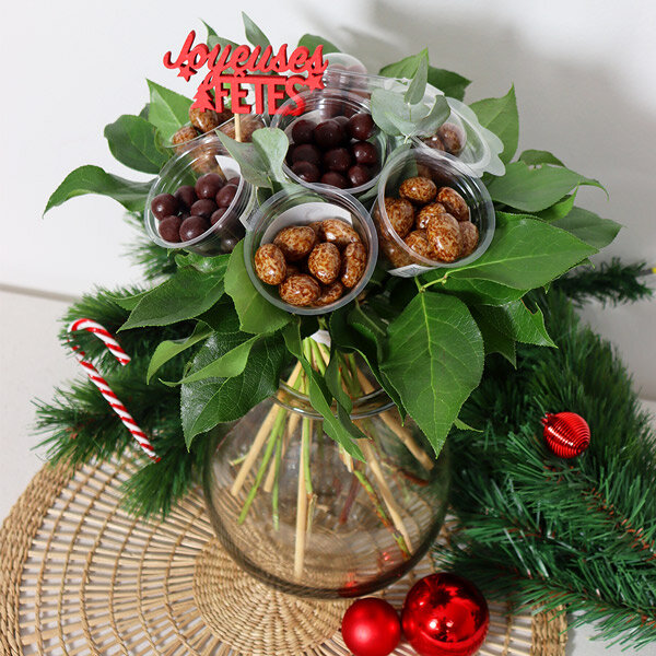 Offrez un instant de plaisir gustatif avec notre bouquet gourmand, spécialement conçu pour les fêtes de fin d’année. Ce magnifique bouquet chocolaté associe la finesse des chocolats à une touche festive inoubliable. Au cœur du bouquet, un joli pic rouge scintillant, parfait pour faire briller les yeux de vos proches. Un cadeau qui ravira les papilles et réchauffera les cœurs.