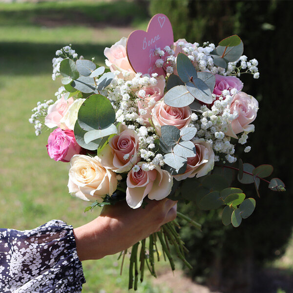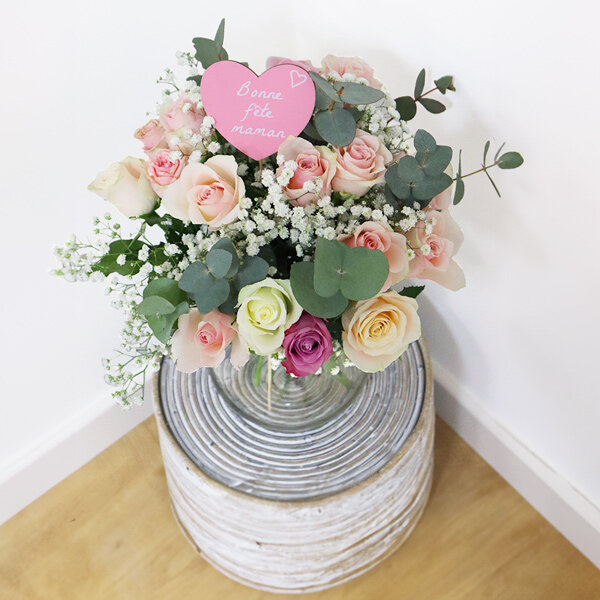 C'est le moment idéal pour célébrer votre maman adorée ! Laissez-vous tenter par notre ravissant bouquet Fleur de Rose, accompagné d'un pic portant le message "Bonne fête maman". Avec ce détail attentionné, votre geste sera encore plus doux et significatif, transmettant ainsi tout votre amour et vos vœux pour cette journée spéciale.