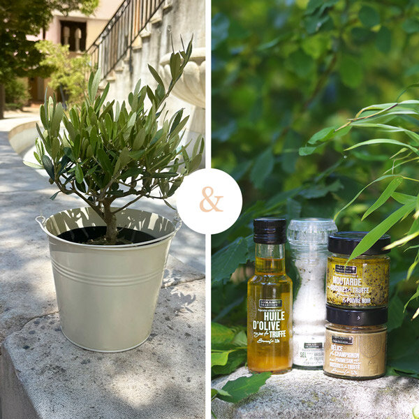 Ce coffret gourmand réunit des produits beaux, bons et bio qui illumineront vos plats en les habillant d'une légère note de truffe ; nous avons ajouté, pour que le plaisir des sens soit total, un superbe olivier. Le groupe Savor Création, référence de l’épicerie fine, met, depuis plusieurs années, son savoir-faire gastronomique au service de produits originaux, hauts en couleur et de grande qualité. Brodant sur divers univers luxueux et authentiques, la gamme bio révèle, au travers une subtile initiation des papilles, tout un monde de saveurs et de délicatesse parfumée. Une croisière initiatique à savourer subtilement.