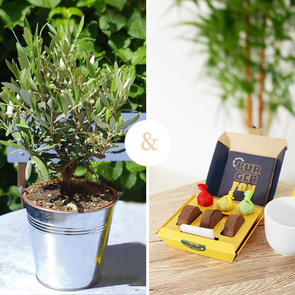 Gourmet mais soucieux de votre consommation ? Florajet s’associe à Resetea pour partager avec vous la passion des plantes. Quel plus grand bonheur que de voir son travail grandir jour après jour ? Retrouvez dans ce coffret tout le nécessaire pour réaliser vos meilleurs burgers : des graines de tomates, de cornichons et de laitue, à planter et à chouchouter. Ce kit à planter hors du commun est accompagné d'un petit olivier en pot, idéal pour parfaire votre main verte.