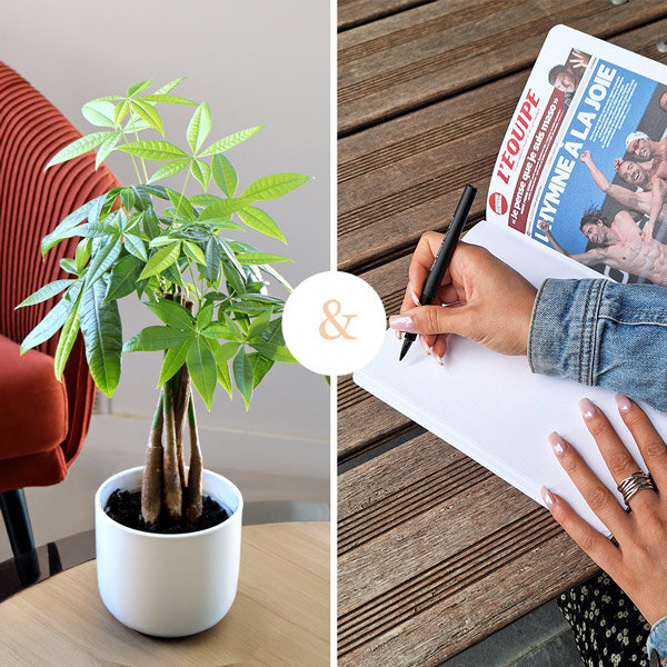 Plongez dans l'univers passionnant du sport avec notre ensemble exceptionnel. Notre pachira, symbole de prospérité et de chance, est accompagné d'un carnet de notes L'Equipe avec des Unes historiques mettant en lumière les moments marquants de l'histoire sportive. Laissez ce duo unique éveiller votre passion pour le sport et apporter une ambiance dynamique à votre espace, rappelant les racines profondes de cette passion intemporelle.