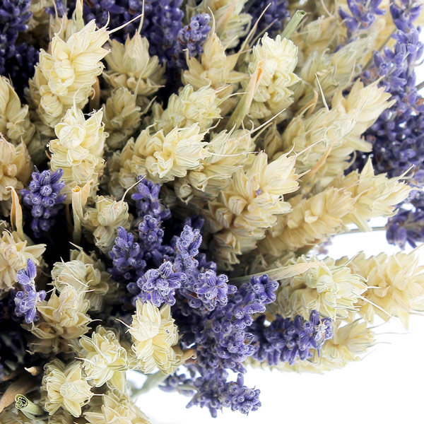Fruit du travail de la terre et des hommes, ce prestigieux bouquet de fleurs séchées devient un véritable objet de décoration. Arborant les couleurs de l'été, cette composition symbolique enveloppe les intérieurs hivernaux d'une ambiance chaleureuse et ensoleillée, diffusant une fragrance délicate et naturelle. Le blé, symbole de fertilité et de richesse, entoure la lavande au bleu profond, exhalant son parfum caractéristique dans un bouquet haut en couleurs. Cette composition aux notes d’allégresse est parfaite pour toutes les occasions.