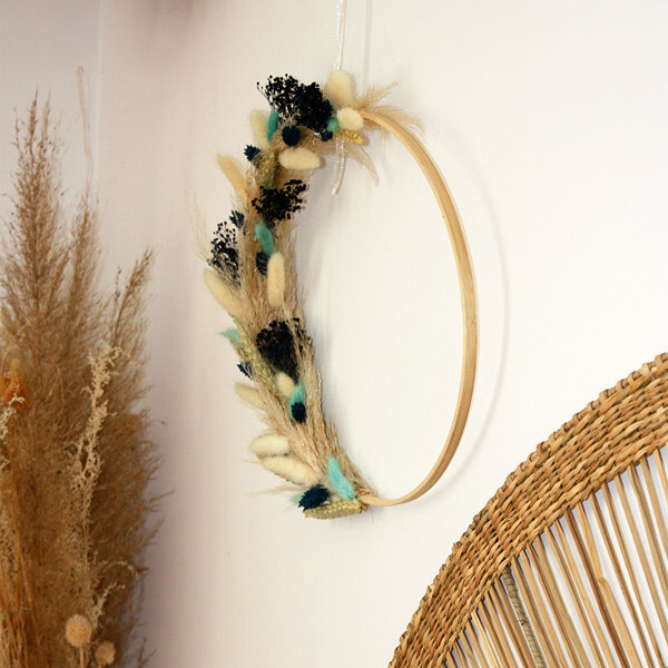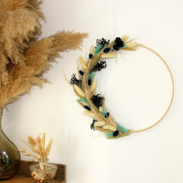 Apportez une touche de romantisme à votre intérieur avec notre charmante couronne de fleurs séchées ! Réalisée avec amour et minutie, cette couronne de fleurs dans les tons bleus élégante peut être accrochée au mur ou posée sur un buffet pour une ambiance douce et sophistiquée. Succombez à la tendance des fleurs séchées et transformez votre intérieur en une scène digne de Pinterest ou d'un magazine déco tendance !