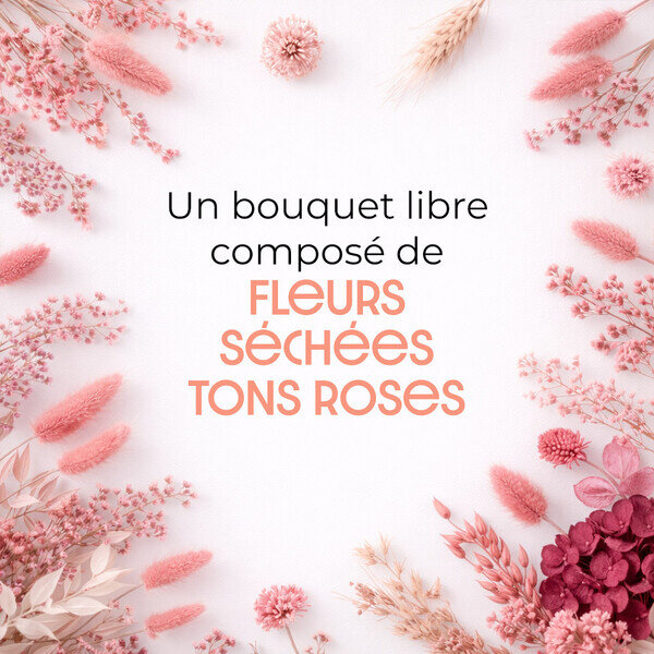 Votre artisan fleuriste réalisera une création de fleurs séchées aux tons roses en fonction de la touche artistique qui lui est propre et de la tendance du moment. Le visuel présenté est non contractuel.