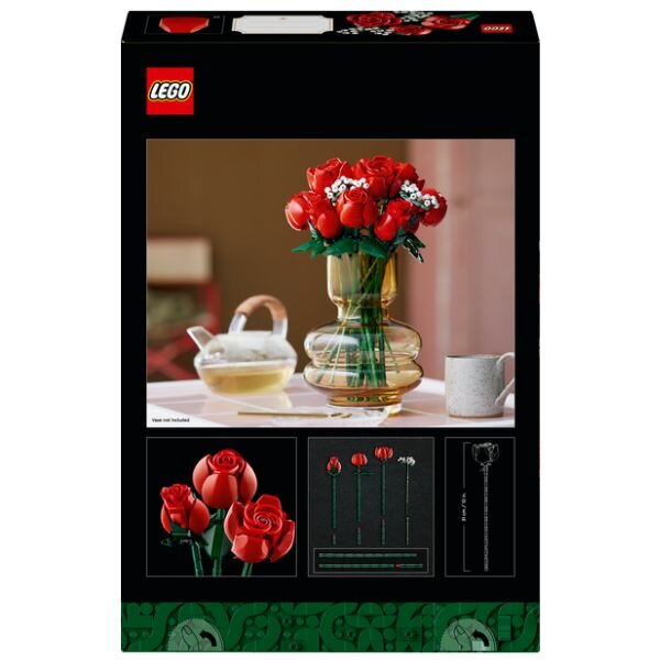 Prenez une pause créative avec LEGO® Botanicals Le bouquet de roses, un set de décoration florale conçu pour les adultes. Ce set de construction immersif vous permet d’assembler 12 fleurs artificielles : des roses rouges à différents stades de floraison (4 ouvertes, 4 demi-ouvertes, 4 en bourgeons), accompagnées de délicates branches de gypsophile. Avec leurs longues tiges vertes, ces plantes artificielles trouvent naturellement leur place dans un vase, pour créer un bouquet de fleurs raffiné. Livré avec 6 sachets de briques et des notices détaillées, ce set de décoration d’intérieur invite à partager l’expérience. Parfait en cadeau pour adultes, à offrir pour un anniversaire, la Saint-Valentin, ou toute autre occasion. Combinez ce bouquet LEGO® avec d’autres fleurs LEGO® pour composer une décoration florale personnalisée.