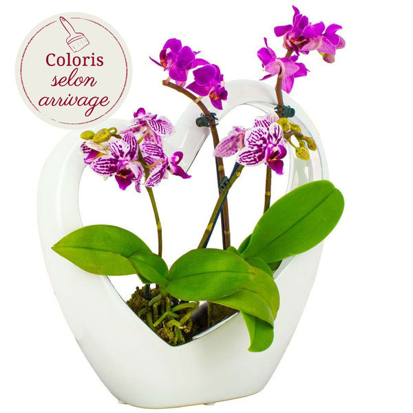 Un cœur géant contenant deux mini orchidées exprimera les plus nobles sentiments. Amour pur, amitié, innocence …. La liste est longue et résumée en un cadeau délicat qui illustrera à merveille la profondeur de vos sentiments les plus sincères à votre destinataire. Il est grand temps de faire plaisir avec des fleurs, et pas n'importe lesquelles.. des orchidées aussi lumineuse que le cœur qui les accompagne.