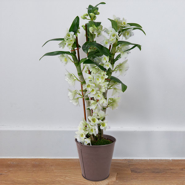 Le dendrobium ou orchidée bambou n'est décoratif qu'en hiver et en pleines fleurs. Votre précieux dendrobium a besoin de lumière et de températures assez hautes sans être desséchantes, un rebord de fenêtre lui conviendra en évitant le soleil brûlant de midi. Arrosez modérément de manière à ce que le mélange sèche bien en surface mais ne soit pas desséché à l'intérieur et respirez l'odeur enivrante de ses fleurettes.