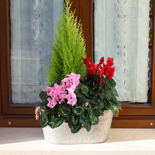 Cette élégante composition reproduit l’ambiance des jardins d’Italie. Simple et naturelle, elle nécessite peu de soins pour conserver longtemps son charme et sa fraîcheur. Cette coupe de plantes est parfaite pour un hommage personnel qui se prolongera dans le temps tout en soulignant vos sentiments les plus sincères pour soulager la perte d'un être cher.