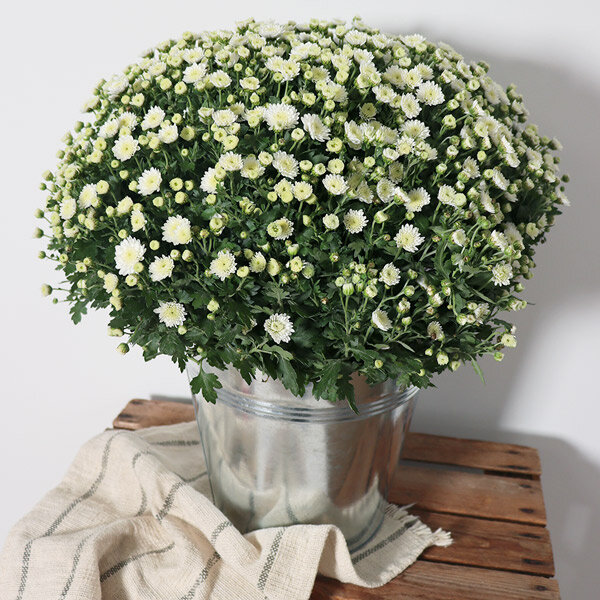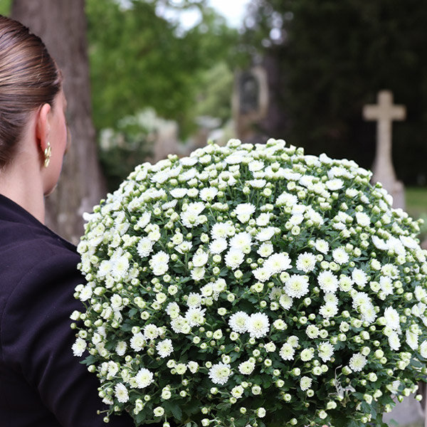 On a coutume de célébrer les défunts et de fleurir leurs tombes à la Toussaint. Pour témoigner à toutes ces personnes qui vous sont chères votre affection, laissez-vous tenter par cette tendre potée de chrysanthèmes blancs. Bien que les chrysanthèmes soient le plus souvent assimilés à la Toussaint, ces fleurs symbolisent avant tout l'amour. C'est pourquoi, ce sont les fleurs idéales pour transmettre vos plus sincères sentiments et fleurir la dernière demeure du défunt.