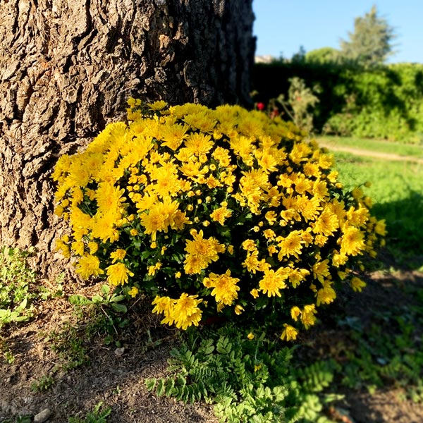 En cette période de Toussaint, nous vous proposons cette délicate potée de petits chrysanthèmes jaunes (petites fleurs, pomponnettes). En cette période de recueillement, ce tendre chrysanthème en pot fleurira en adéquation, la tombe des défunts pour rendre dignement hommage.