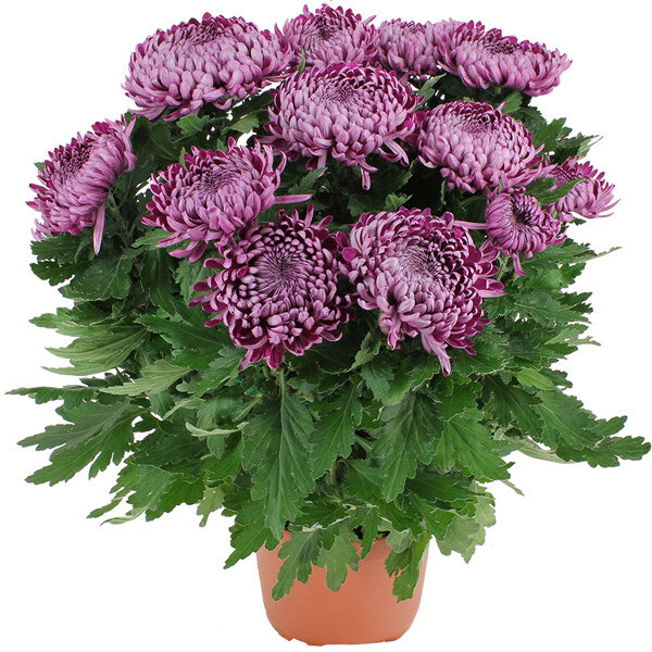 Potée de chrysanthèmes violets à gros pompons (le contenant peut varier en fonction des disponibilités).Le nombre de pompons peut varier en fonction de la taille des fleurs disponibles chez le fleuriste en charge de votre commande.