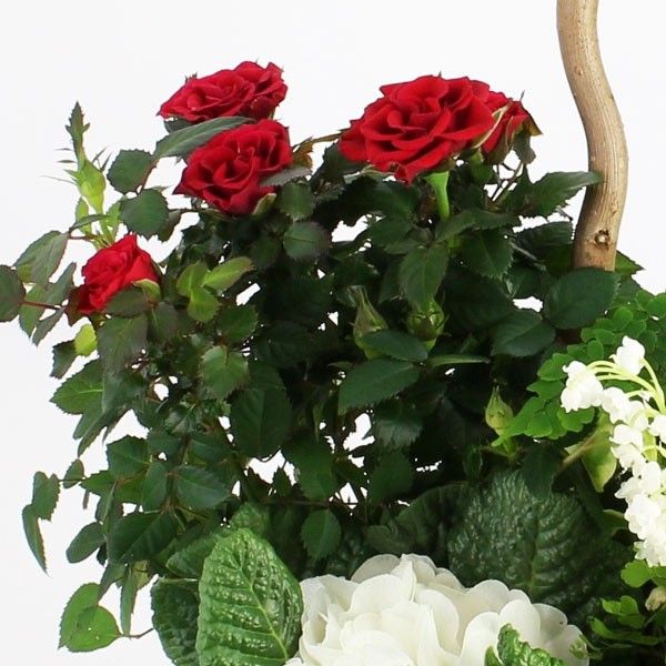 Oscillant entre roses écarlates et primevères immaculées, nos artisans fleuristes ont créé ici une composition adéquate et de circonstance, pour exprimer votre empathie lors de la perte d'un proche. Le rosier rouge, replanté ultérieurement, donnera naissance à des centaines de fleurs incandescentes qui prolongeront l'expression de votre compassion au fil du temps.Vous ne savez pas quel message de condoléances associer ? Retrouvez tous nos messages pour condoléances.