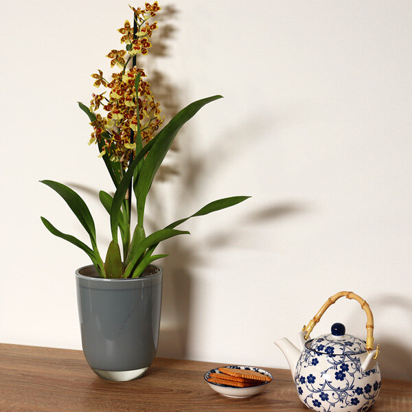 Unique par ses pétales aux motifs complexes et ses couleurs vibrantes, la Cambria ne se contente pas d'embellir un espace, elle y ajoute une élégance subtile. Avec sa tige élancée, elle semble presque flotter, apportant une touche aérienne à n'importe quel décor. Le petit plus ? La Cambria diffuse un parfum délicat et apaisant, qui invite la nature et la douceur dans vos foyers.