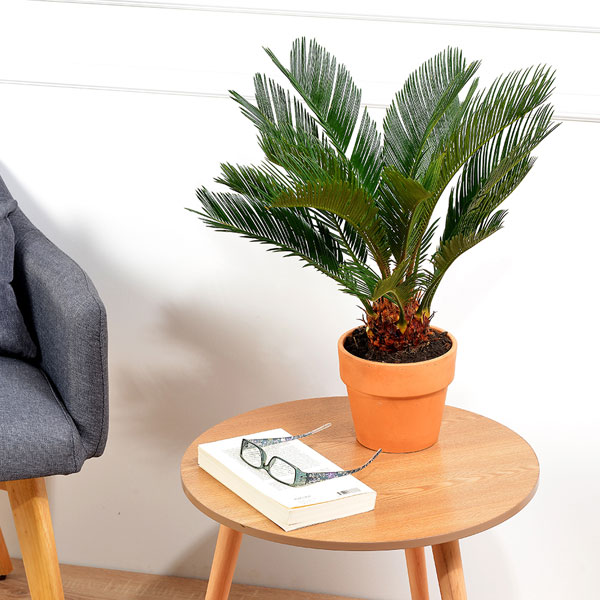 Plante d'intérieur pas tout à fait palmier, le cycas a tout pour vous séduire. Il s'adapte volontiers à l'intérieur de nos maisons et adore lorsque la température avoisine les 20/22°. Une très bonne lumière lui est nécessaire, il aime aussi le soleil direct. L'arrosage doit être mesuré mais régulier en été , puis espacé en automne et hiver. Facile à vivre et très ornementale cette magnifique plante vous accompagnera pendant de longues années.