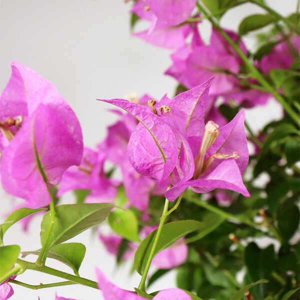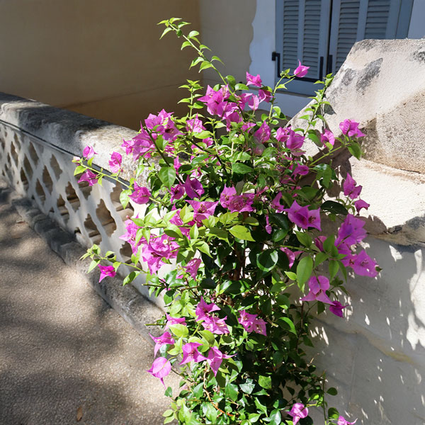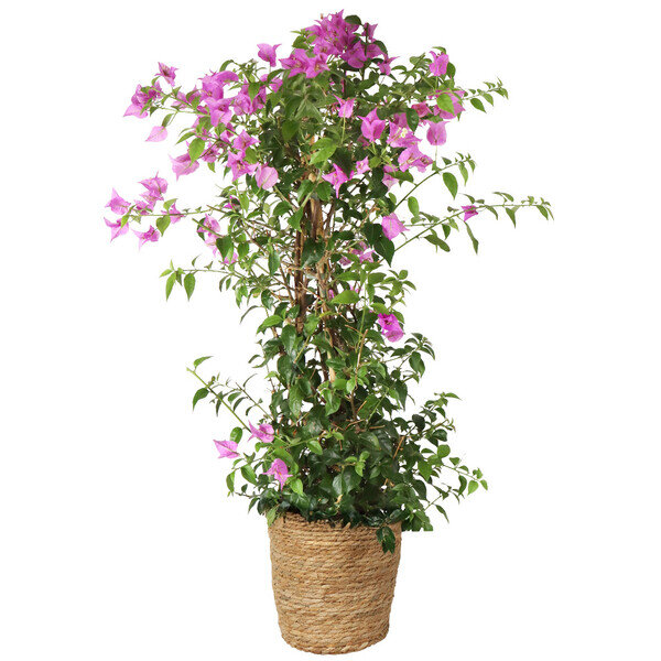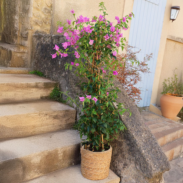 Grand bougainvillier dans son pot en osier.