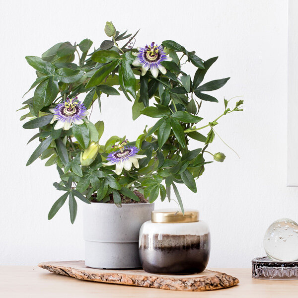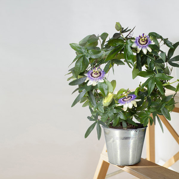 le Passiflore Silly Crow est une plante grimpante vigoureuse qui s'entrelace sur son support. Originale et exotique, elle grandit très vite. Ses fleurs, qui durent de longs mois, peuvent faire jusqu'à 15cm de diamètre !