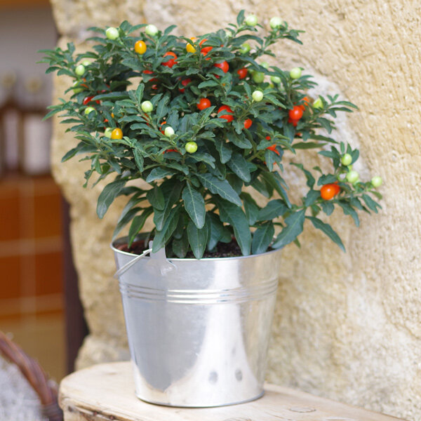 A l'observer, ce petit pommier d'amour donne tout de suite envie de l'adopter. Bien que ces petits fruits ne soient pas comestibles, ils viennent habiller chaleureusement les petites branches charnues qui font tout son charme ! Le solanum est une petit arbuste frileux qui ne supportera pas les hivers en extérieur. Il viendra réchauffer votre intérieur de toute sa douceur.