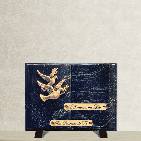 Offrez un message de sérénité avec cette plaque funéraire intitulée Paix. Sa conception tout en finesse et sa symbolique forte invitent au repos de l’âme et à l’apaisement des vivants. Elle offre une présence réconfortante et discrète, comme une invitation silencieuse à la méditation et au souvenir paisible. Un hommage idéal pour dire au revoir en silence, avec la promesse d’une paix retrouvée.