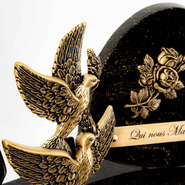 Chaque plaque funéraire Florajet est réalisée avec soin par notre partenaire et conçue dans des matériaux durables et nobles : poudre de granit ou composite pour la base, ornements en bronze pour les motifs décoratifs, pieds en aluminium pour une stabilité optimale. Chaque gravure et finition est contrôlée pour garantir précision, élégance et respect de votre message personnalisé. La plaque est livrée entièrement montée, prête à être installée. Elle est ensuite expédiée par transporteur dans des conditions sécurisées pour vous parvenir en parfait état. Un hommage durable et respectueux, conçu pour honorer dignement la mémoire d'un être cher.