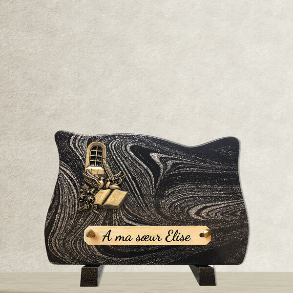 Comme un carnet de souvenirs posé à jamais sur la pierre, cette plaque funéraire intitulée Petite Histoire raconte en silence les doux instants partagés avec l’être aimé. En granit sobre et élégant, elle se fond naturellement dans un lieu de recueillement. Son format discret évoque la pudeur, la retenue, et la tendresse de ce lien unique que l’on continue à écrire dans nos pensées. Un hommage tout en douceur, pour dire sans trop de mots ce que le cœur ne cesse de murmurer.