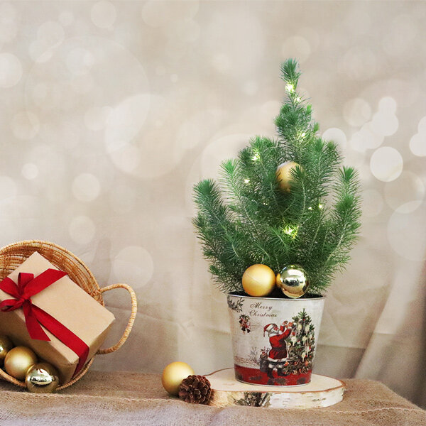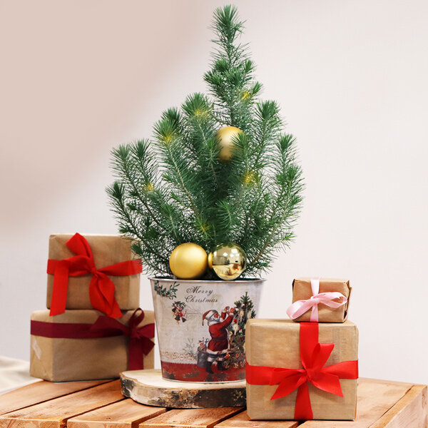 Ce charmant petit sapin de Noël naturel, niché dans un pot orné de joyeux dessins du Père Noël s'affairant à préparer les cadeaux, incarne la magie des fêtes dans un format miniature et pratique. Laissez sa présence illuminer votre maison pendant cette saison spéciale, apportant chaleur et réconfort à vos célébrations de Noël. Un choix idéal pour une décoration authentique et festive qui s'adaptera à tous les coins de votre intérieur.