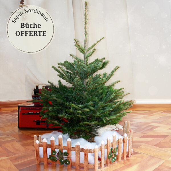Sapin Nordmann Extra (taille comprise entre 100 et 125 cm). Livré sur bûche.